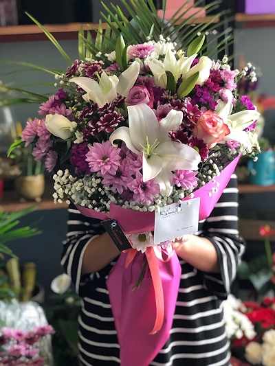 Lilyum ve mevsimin en güzel kır çiçeklerinden hazırlanmış dekoratif ambalajlı buket
